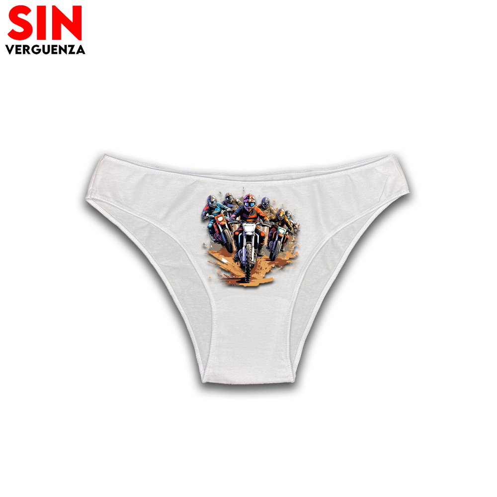 La Colección de Bragas Motos de Cross está diseñada para las amantes del motocross que no solo buscan confort, sino también expresar su pasión por este emocionante deporte. Con un diseño que refleja la adrenalina y la energía del motocross, estas bragas te ofrecerán la combinación perfecta de estilo y comodidad.