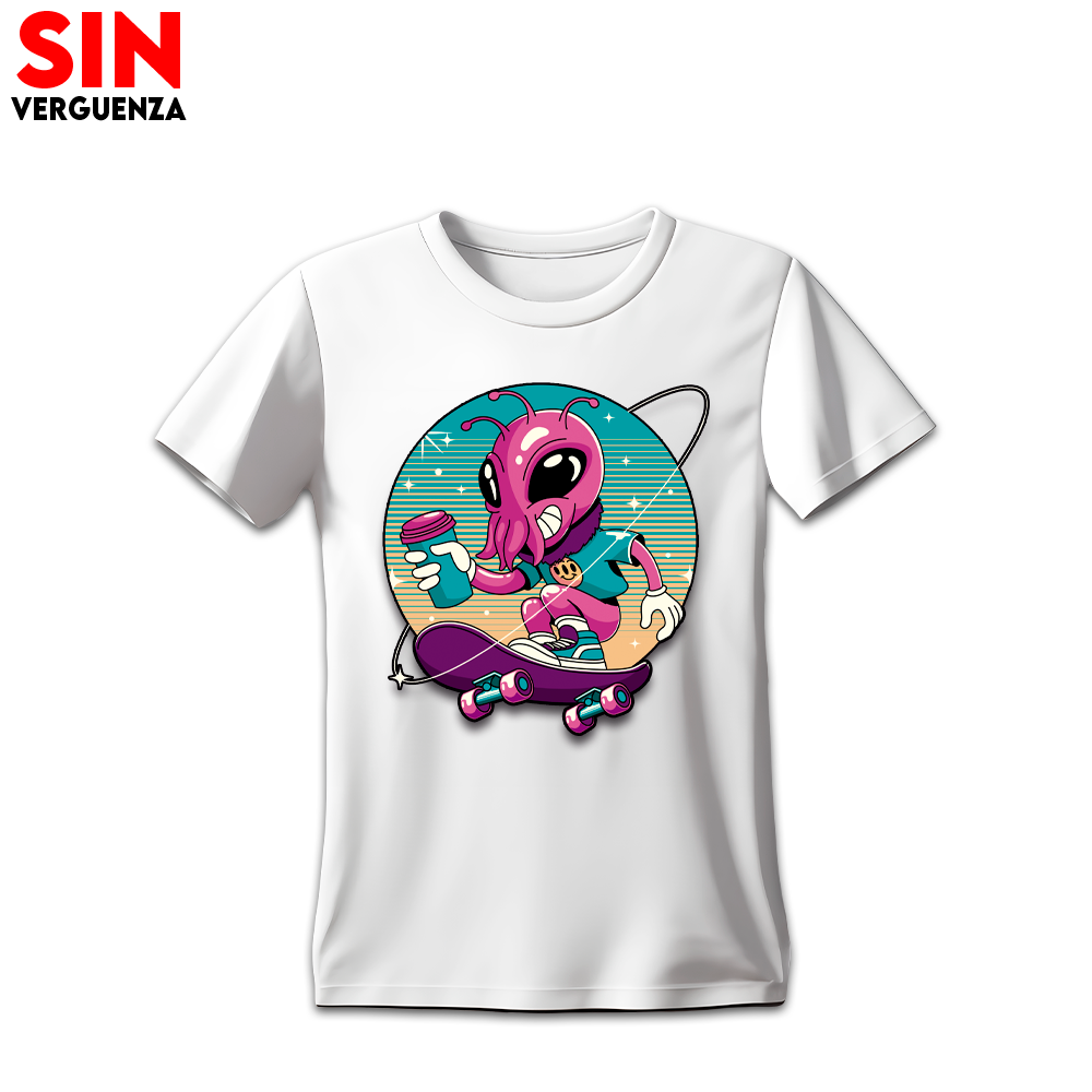La colección de camisetas "Alien Skater" combina estilo urbano con un toque intergaláctico. Con gráficos únicos de extraterrestres patinadores, estas camisetas son perfectas para quienes buscan destacar con un diseño atrevido y divertido.