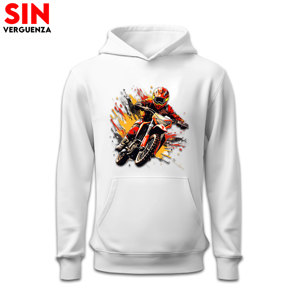 Para los amantes del motocross, esta sudadera es el complemento perfecto. Diseñada para reflejar la adrenalina y pasión por las dos ruedas, combina comodidad y estilo en una prenda imprescindible para cualquier rider.