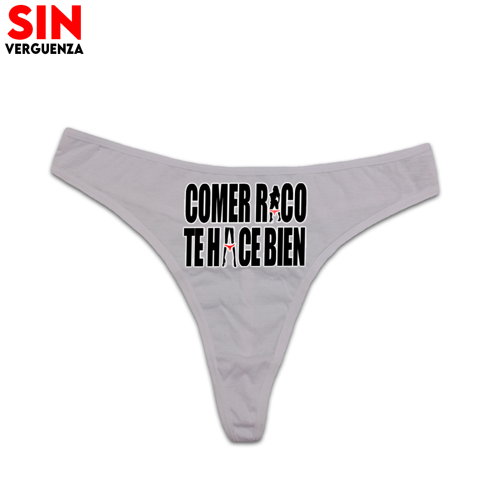 La colección de tangas "Comer Rico te Hace Bien" combina comodidad y humor para quienes buscan un look atrevido y único. Estas prendas están diseñadas para ofrecer un ajuste perfecto con un toque divertido que destaca la personalidad.