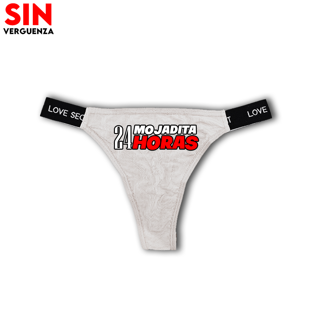 La colección "Mojadita 24 Horas" es para las mujeres que no tienen miedo de vivir cada momento con una sonrisa pícara. Estas tangas ofrecen comodidad y un toque de humor, para que te sientas increíblemente bien mientras te diviertes.