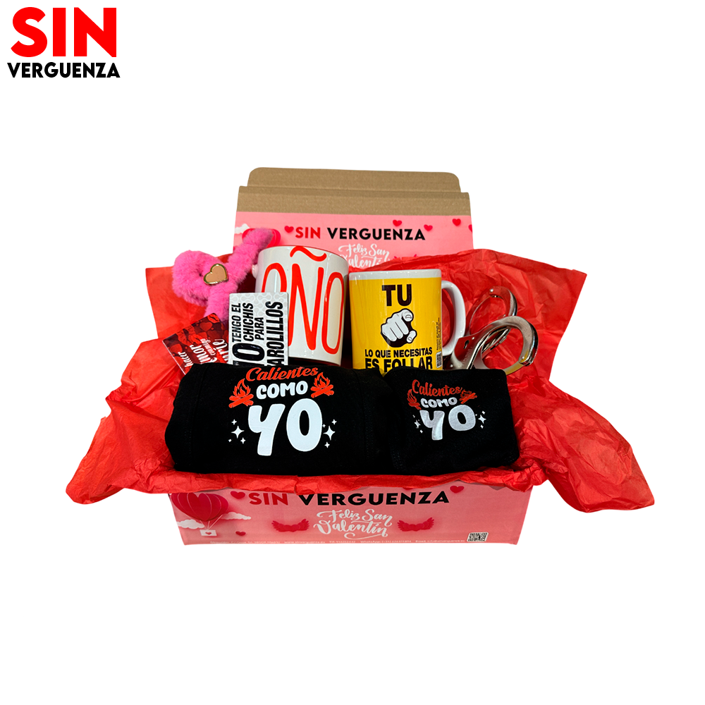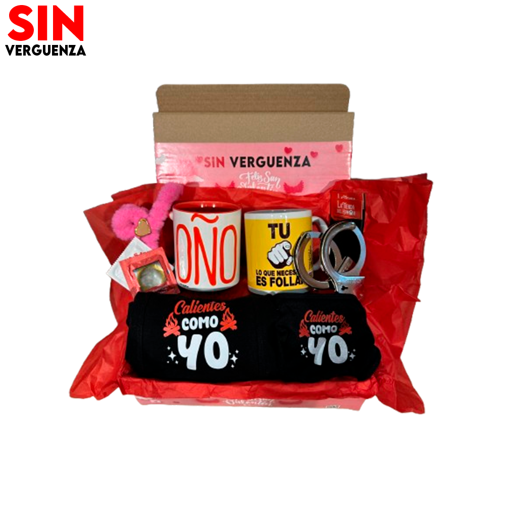 Todo viene cuidadosamente presentado en una caja regalo exclusiva Sin Vergüenza con papel de seda rojo y detalles decorativos. Listo para entregar, sin necesidad de envolver nada.